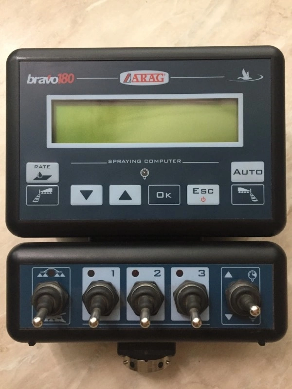 Блок BRAVO 180 (без датчика скорости и кабеля) Компьютер Bravo-180 итальянской фирмы ARAG – это идеальное решение для средних и маленьких сельхозмашин, которые до сегодняшнего дня считались экономически не подходящими для оснащения компьютерами. Компьютер оснащен специфическим программным обеспечением для: опрыскивания нескольких рядов; опрыскивания; штанг для опрыскивания. Общие характеристики: - автоматическое регулирование распределения - временное увеличение и уменьшение количества распределяемой жидкости - запоминание информации до 4 различных обработок - автоматическое поддерживание давления ниже минимальной скорости агрегата - аварийные сигналы в случае неисправностей - очень яркий светодиод - эргономичные герметичные выключатели - обширный дисплей - отображение дозировки ( I/ha )одновременно со следующими данными: * скорость * обрабатываемая площадь * количество вылитой жидкости * уровень жидкости в баке * расход ( I/min ) * номер обработки * рабочее время * пройденное расстояние Опрыскиватели, оборудованные электронной системой, обеспечивают высокую эффективность использования пестицидов, полный контроль и учет рабочего процесса опрыскивания, что в свою очередь значительно уменьшает затраты на химические вещества, увеличивает производительность агрегата и значительно облегчает работу оператора.